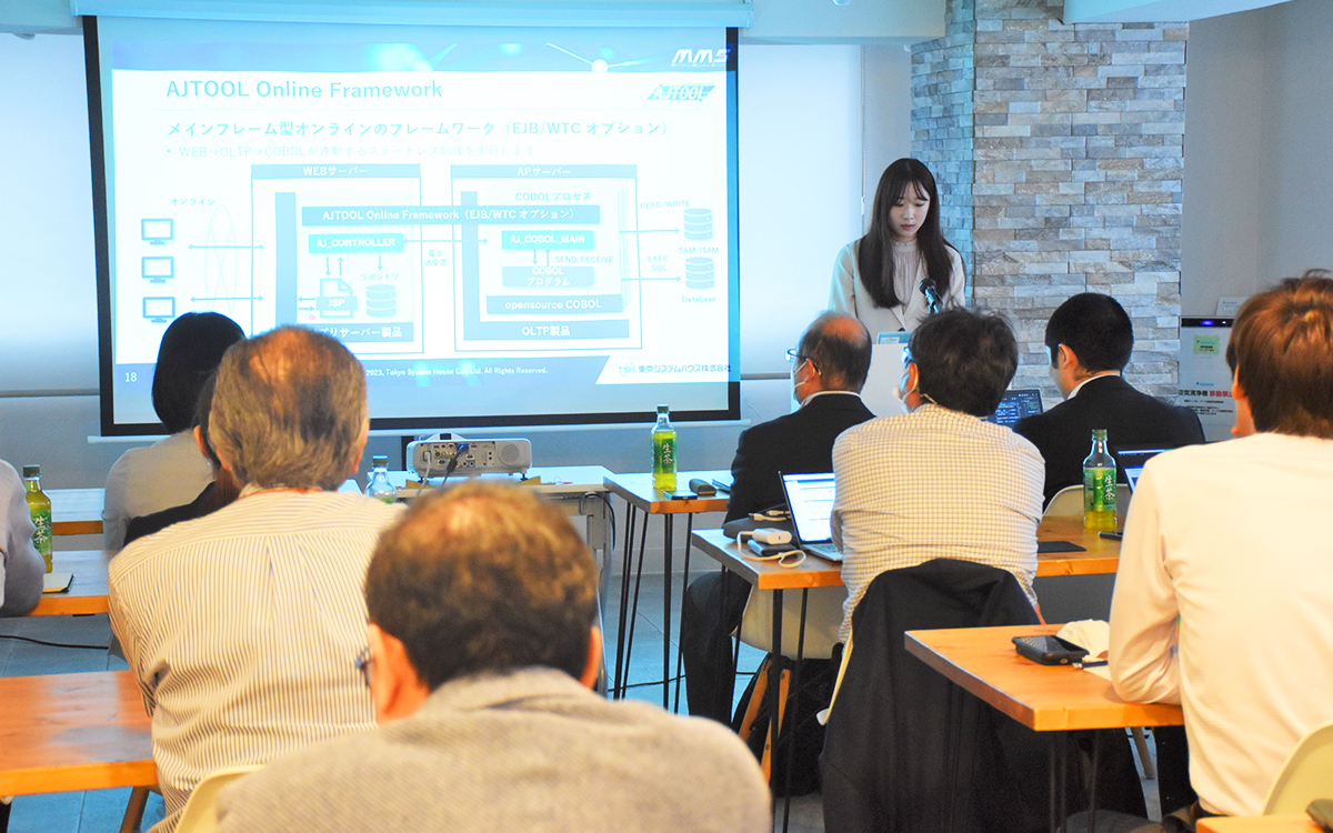 当社が長年推進しているOSSを組み合わせたマイグレーションについて、移行方式のMMS(Mainframe Migration Service)と実行基盤のAJTOOLの紹介、デモンストレーションを行いました。
