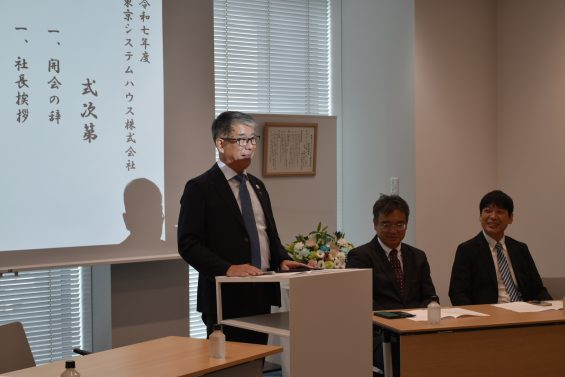 林社長のモンゴル語での挨拶からスタートし、祝辞では「入社おめでとうございます。まだ日本での生活に慣れないことも多いと思いますが、時間が解決してくれるでしょうし、会社には仲間がたくさんいます。多国籍の社員も多く在籍していますので、心配せずに過ごしてください。そして当社は今年11月に50周年を迎えます。設立当初からグローバルなビジネス展開を目標に掲げており、その実現に向けた取り組みの一つとしてグローバル採用にも力を入れています。まずはお二人には生活に慣れていただき、将来的には両国のビジネスをつなぐ架け橋となっていただけることを期待しています。」と、温かい激励のメッセージが贈られました。