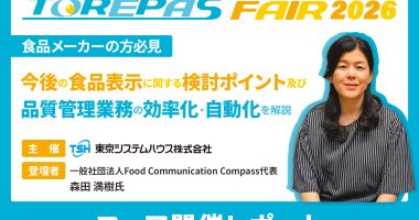 2026年2月20日、食品メーカーの品質管理・食品表示業務に携わる皆さまを対象に、オンラインセミナー「TOREPAS FAIR2026」を開催しました。